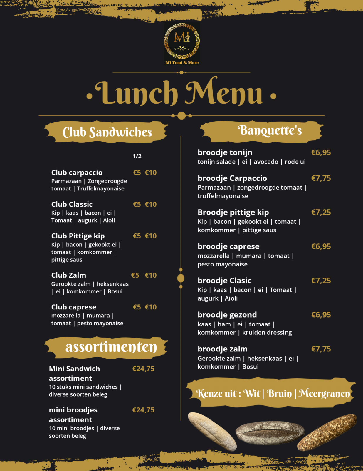 Bestel nu eenvoudig een gevarieerde lunch aan de hand van onze lunchkaart